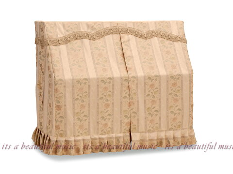 【its】レビューでもれなく高級クロス同梱!アップライトピアノカバー(オールカバー) 吉澤UP-583CB「穏やかなベージュ系の花柄ボーダー」【Sサイズ】(ヨシザワ583CBシリーズ)